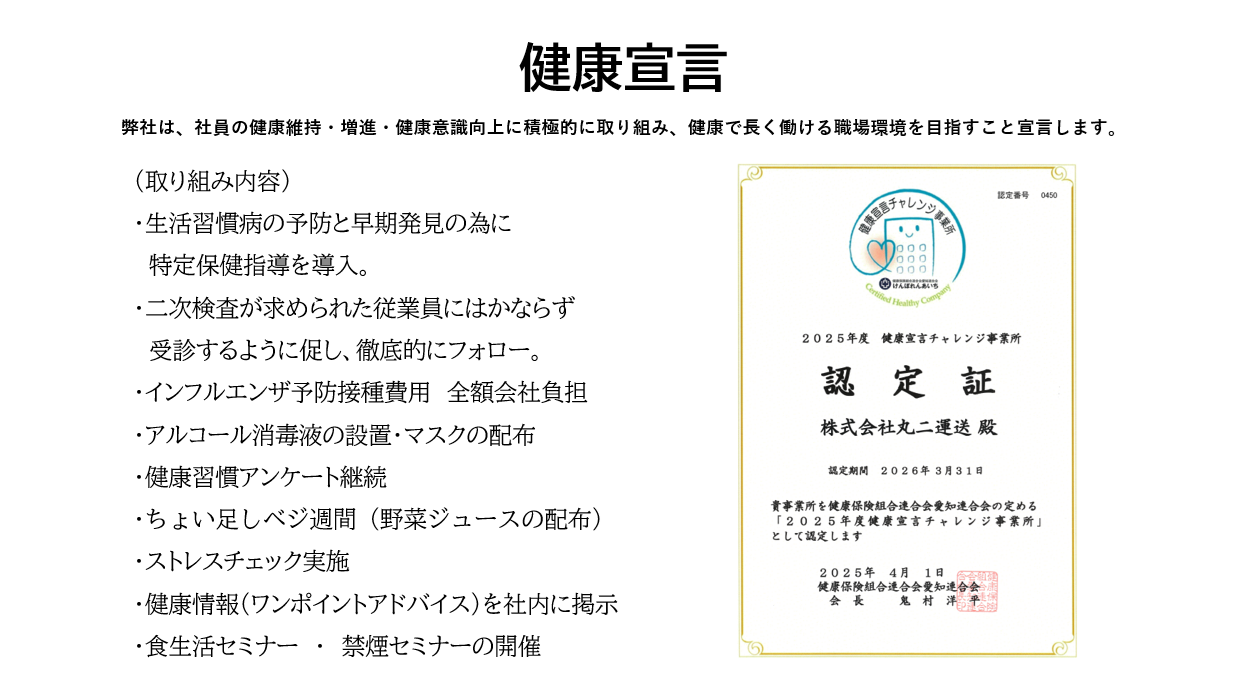 株式会社丸二運送 | 求人・採用 | 名古屋